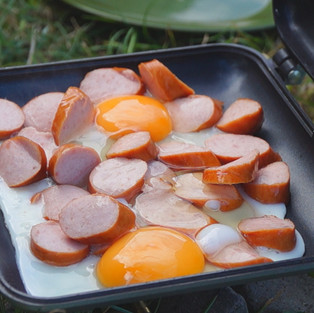 The next morning we woke up to the relaxing sound of rain tapping on the tent, it then became apparent that we had a leak. This was quickly and easily fixed with the roll of 3M aerospace tape I had taken with me, but now we had to decide if we should climb Ben Nevis in the rain, or wait another day. Luck was on our side, and the rain subsided. It was now midday, the perfect time to eat one last meal before climbing Ben Nevis. Today I was cooking, I prepared a steak and kidney pie with a serving of baked beans.